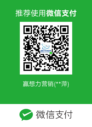 | 微信掃碼付款 | 微信昵稱(chēng):贏想力營(yíng)銷(xiāo) ![]() |