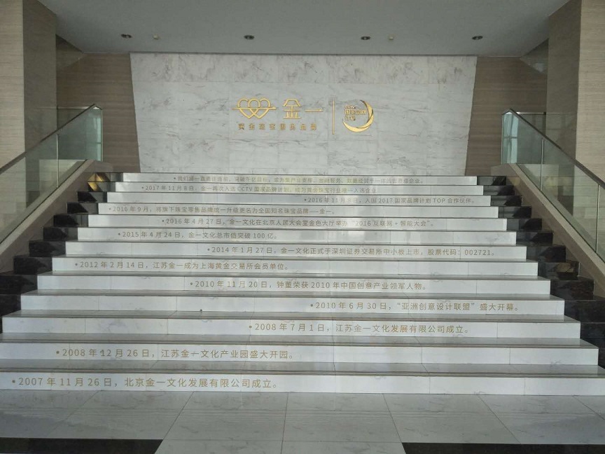 金一文化成立于2007年11月26日,注冊資金8.35億元,2014年1月27日在深圳證券交易所上市,股票代碼為002721。公司主營貴金屬工藝品、珠寶首飾的研發(fā)設(shè)計、生產(chǎn)及銷售。