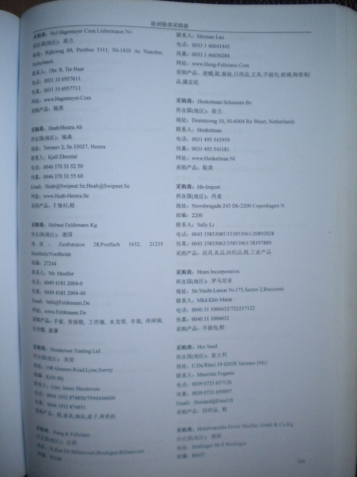 書(shū)刊簡(jiǎn)介:《全球采商黃頁(yè)》系列叢書(shū)是由全球最活躍的專(zhuān)業(yè)買(mǎi)家及重要國(guó)際性展會(huì)的到會(huì)采購(gòu)商名片信息匯編而成,包含三十多個(gè)行業(yè)分類(lèi),匯集了各類(lèi)產(chǎn)品的買(mǎi)家信息。其中收錄的每家采購(gòu)商信息均是我們通過(guò)與買(mǎi)家面對(duì)面的登記整理收集而成,采購(gòu)意向明確,針對(duì)性強(qiáng)。為了確保信息的準(zhǔn)確性和時(shí)效性,我們定期進(jìn)行跟進(jìn)、回訪(fǎng)、補(bǔ)充及更新工作。每家采購(gòu)商信息包括國(guó)別、公司名稱(chēng)、聯(lián)系人、地址、電話(huà)、傳真、電郵、網(wǎng)址、采購(gòu)產(chǎn)品等詳細(xì)內(nèi)容,每?jī)?cè)《黃頁(yè)》約有兩千家左右的采購(gòu)商信息。在當(dāng)前國(guó)際出口形勢(shì)日趨嚴(yán)峻的環(huán)境下,如何降低成本開(kāi)拓國(guó)際市場(chǎng),是每個(gè)出口企業(yè)急需尋找的答案,我們相信通過(guò)我們10多年的外貿(mào)信息服務(wù)經(jīng)驗(yàn)和最新的國(guó)際買(mǎi)家資源服務(wù),將會(huì)為您拓展全球市場(chǎng)提供最直接有效的幫助。專(zhuān)業(yè)對(duì)口的買(mǎi)家信息一定會(huì)幫助貴公司打開(kāi)更廣闊的外貿(mào)市場(chǎng)!