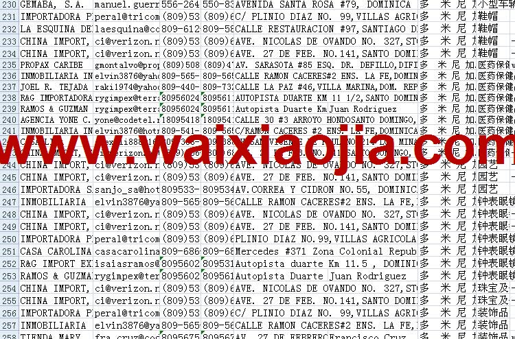 多米尼加采購商名單數(shù)據(jù)為Excel格式,信息可任意修改、復(fù)制、打印、導(dǎo)出及導(dǎo)入到傳真、郵件群發(fā)等軟件中,無任何限制。
