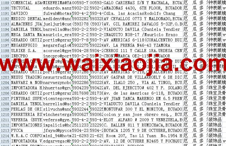 厄瓜多爾采購(gòu)商名單數(shù)據(jù)為Excel格式,信息可任意修改、復(fù)制、打印、導(dǎo)出及導(dǎo)入到傳真、郵件群發(fā)等軟件中,無任何限制。