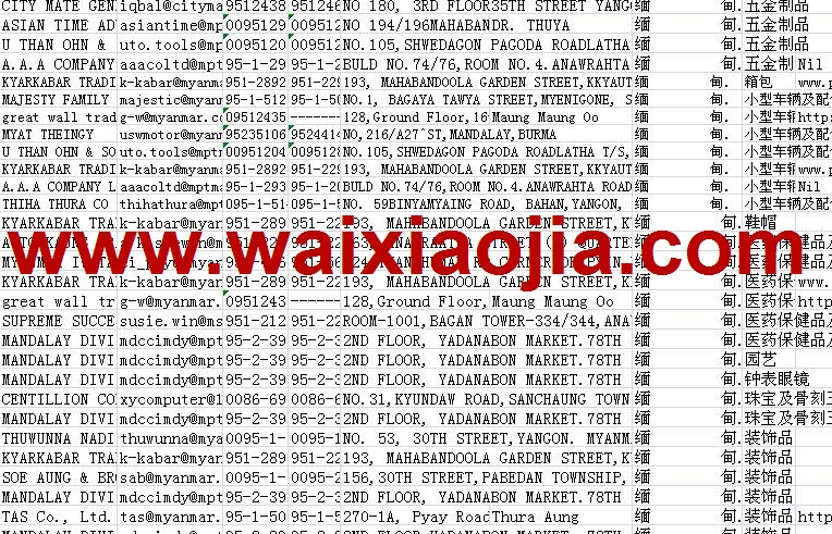 緬甸采購商名單數據為Excel格式,信息可任意修改、復制、打印、導出及導入到傳真、郵件群發等軟件中,無任何限制。