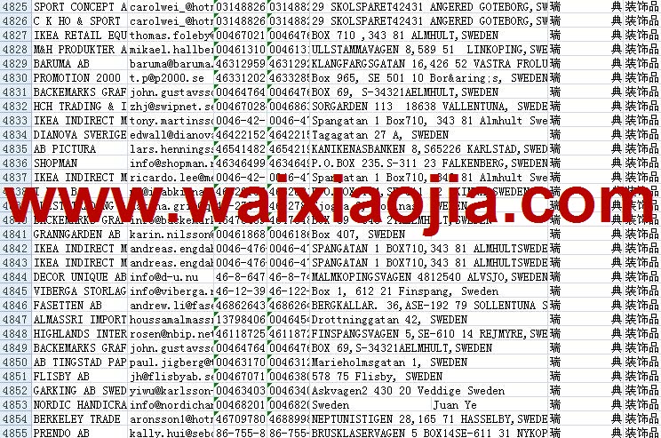 瑞典采購商名單數(shù)據(jù)為Excel格式,信息可任意修改、復(fù)制、打印、導(dǎo)出及導(dǎo)入到傳真、郵件群發(fā)等軟件中,無任何限制。