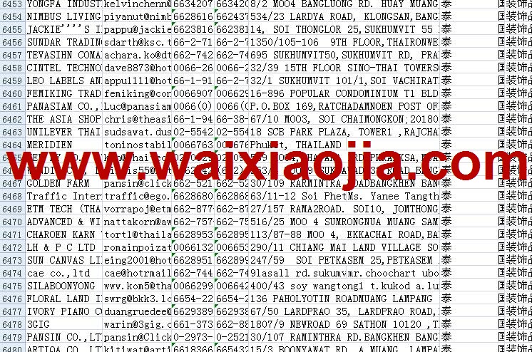 泰國采購商名單數(shù)據(jù)為Excel格式,信息可任意修改、復(fù)制、打印、導出及導入到傳真、郵件群發(fā)等軟件中,無任何限制。