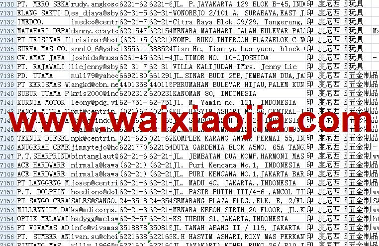 印度尼西亞采購商名單數據為Excel格式,信息可任意修改、復制、打印、導出及導入到傳真、郵件群發等軟件中,無任何限制。