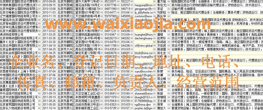 北京貨運(yùn)代理公司名單數(shù)據(jù)為Excel格式,信息可任意修改、復(fù)制、打印、導(dǎo)出及導(dǎo)入到傳真、郵件群發(fā)等軟件中,無任何限制。