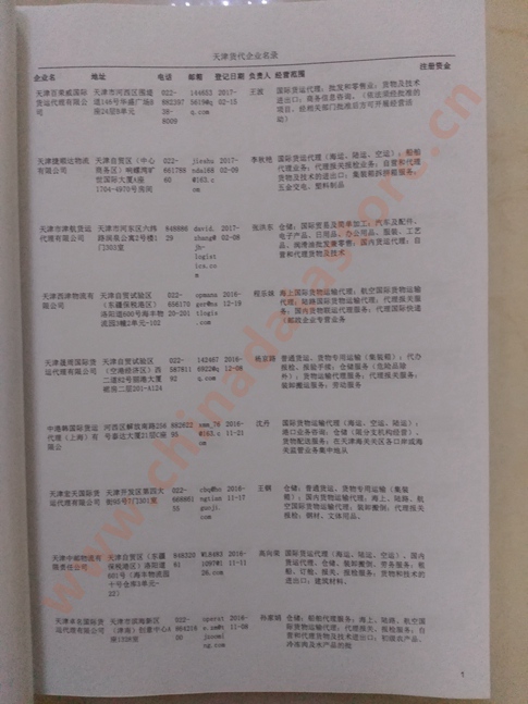 天津貨運公司黃頁包括:企業(yè)名稱、負責(zé)人聯(lián)系方式、企業(yè)電話、傳真、Email、經(jīng)營范圍、地址、郵編等信息。