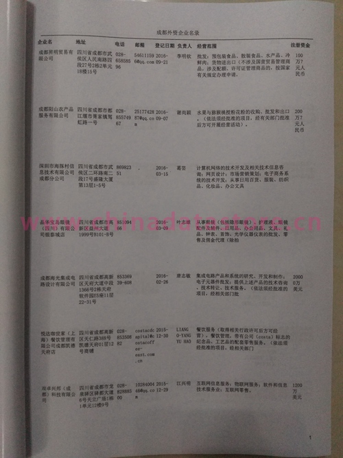 | 成都某個(gè)行業(yè)外資企業(yè)黃頁(yè) | 如機(jī)械、機(jī)電、化工等行業(yè) | 80% | RMB:300元 |