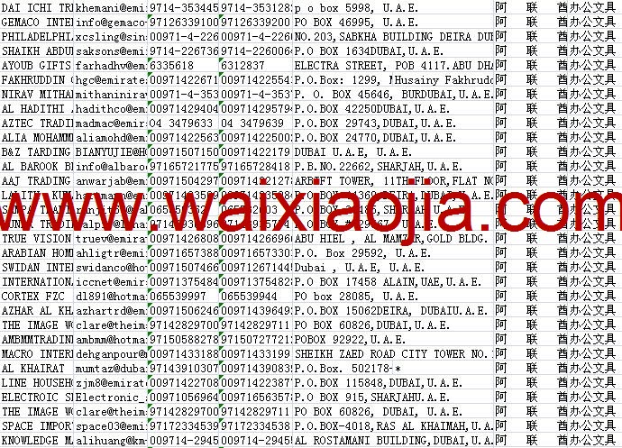 阿聯(lián)酋采購商名單數(shù)據(jù)為Excel格式,信息可任意修改、復制、打印、導出及導入到傳真、郵件群發(fā)等軟件中,無任何限制。