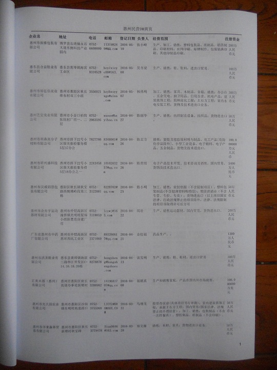 2021版最新惠州企業(yè)黃頁包括《惠州制造企業(yè)黃頁》、《惠州貿(mào)易企業(yè)黃頁》、《惠州民營企業(yè)黃頁》、《惠州外資企業(yè)黃頁》、《惠州外貿(mào)企業(yè)黃頁》共五冊,現(xiàn)優(yōu)惠價:280元/冊。每冊內(nèi)容包括:單位名稱、地址、郵編、電話、傳真、郵箱、經(jīng)營范圍等;惠州企業(yè)黃頁涵蓋了近幾年來最新成立的、有一定規(guī)模的企業(yè),具有非常高的營銷價值。有了這套黃頁開展業(yè)務(wù)也有了針對性,也省去了盲目去尋找客戶名單而浪費的時間了,工作效率也會有很大的提高。歡迎需要惠州企業(yè)黃頁的朋友及時聯(lián)系我們!