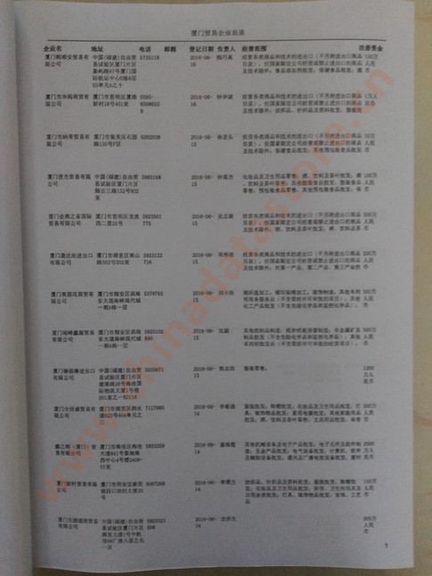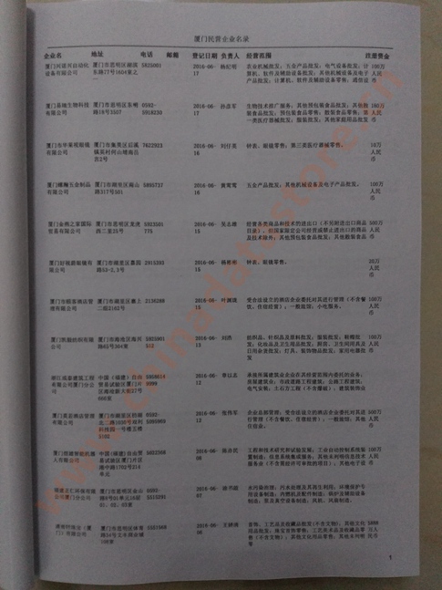 2021版最新廈門企業(yè)黃頁包括《廈門制造企業(yè)黃頁》、《廈門貿(mào)易企業(yè)黃頁》、《廈門民營企業(yè)黃頁》、《廈門外資企業(yè)黃頁》、《廈門外貿(mào)企業(yè)黃頁》共五冊,現(xiàn)優(yōu)惠價:280元/冊。每冊內(nèi)容包括:單位名稱、地址、郵編、電話、傳真、郵箱、經(jīng)營范圍等;廈門企業(yè)黃頁涵蓋了近幾年來最新成立的、有一定規(guī)模的企業(yè),具有非常高的營銷價值。有了這套黃頁開展業(yè)務也有了針對性,也省去了盲目去尋找客戶名單而浪費的時間了,工作效率也會有很大的提高。歡迎需要廈門企業(yè)黃頁的朋友及時聯(lián)系我們!