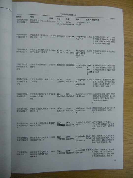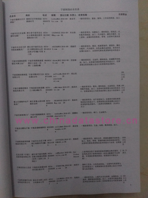 2021版最新寧波企業(yè)黃頁包括《寧波制造企業(yè)黃頁》、《寧波貿(mào)易企業(yè)黃頁》、《寧波民營(yíng)企業(yè)黃頁》、《寧波外資企業(yè)黃頁》、《寧波外貿(mào)企業(yè)黃頁》共五冊(cè),現(xiàn)優(yōu)惠價(jià):280元/冊(cè)。每?jī)?cè)內(nèi)容包括:?jiǎn)挝幻Q、地址、郵編、電話、傳真、郵箱、經(jīng)營(yíng)范圍等;寧波企業(yè)黃頁涵蓋了近幾年來最新成立的、有一定規(guī)模的企業(yè),具有非常高的營(yíng)銷價(jià)值。有了這套黃頁開展業(yè)務(wù)也有了針對(duì)性,也省去了盲目去尋找客戶名單而浪費(fèi)的時(shí)間了,工作效率也會(huì)有很大的提高。歡迎需要寧波企業(yè)黃頁的朋友及時(shí)聯(lián)系我們!