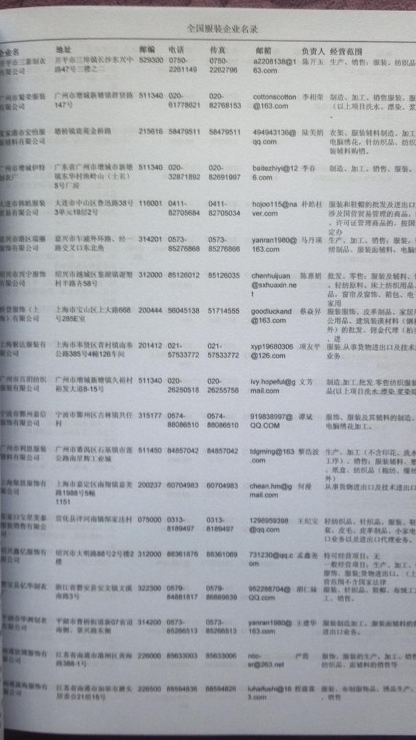 服裝外貿(mào)企業(yè)名錄服裝進(jìn)出口企業(yè)名錄,服裝進(jìn)口企業(yè)名錄,服裝出口企業(yè)名錄