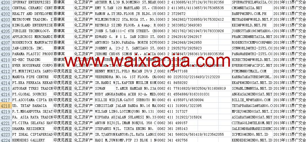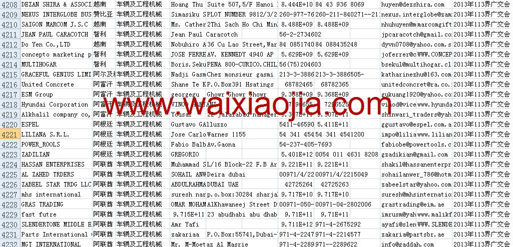 113屆廣交會采購商名單數據為Excel格式,信息可任意修改、復制、打印、導出及導入到傳真、郵件群發等軟件中,無任何限制。
