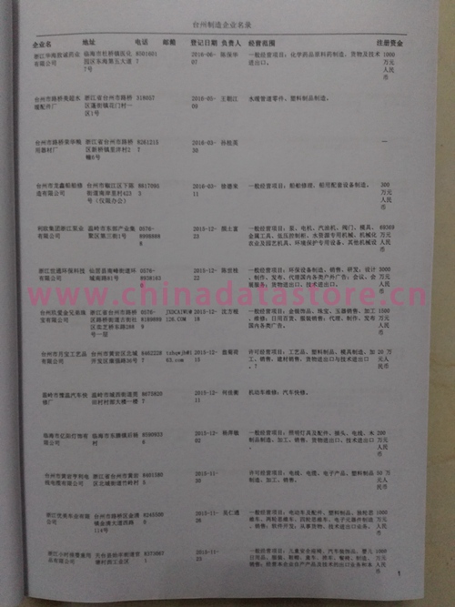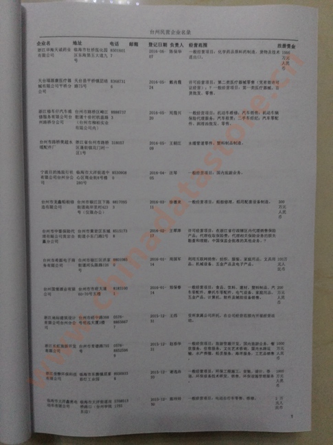 2021版最新臺州企業(yè)黃頁包括《臺州制造企業(yè)黃頁》、《臺州貿(mào)易企業(yè)黃頁》、《臺州民營企業(yè)黃頁》、《臺州外資企業(yè)黃頁》、《臺州外貿(mào)企業(yè)黃頁》共五冊,現(xiàn)優(yōu)惠價:280元/冊。每冊內(nèi)容包括:單位名稱、地址、郵編、電話、傳真、郵箱、經(jīng)營范圍等;臺州企業(yè)黃頁涵蓋了近幾年來最新成立的、有一定規(guī)模的企業(yè),具有非常高的營銷價值。有了這套黃頁開展業(yè)務也有了針對性,也省去了盲目去尋找客戶名單而浪費的時間了,工作效率也會有很大的提高。歡迎需要臺州企業(yè)黃頁的朋友及時聯(lián)系我們!