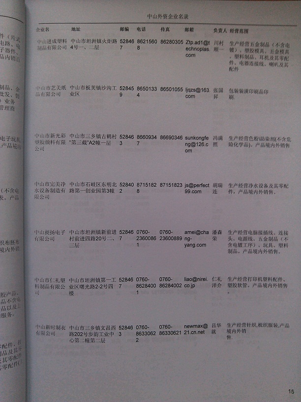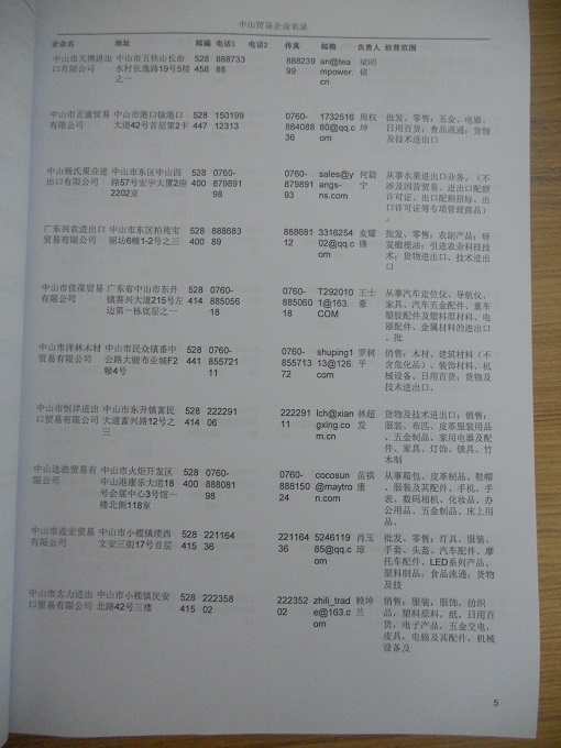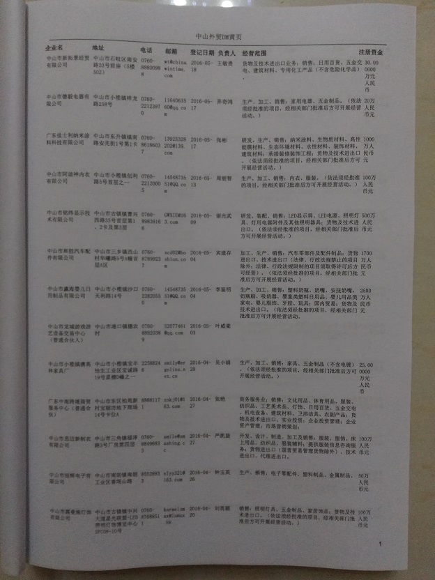 2021版最新中山企業(yè)黃頁包括《中山制造企業(yè)黃頁》、《中山貿(mào)易企業(yè)黃頁》、《中山民營企業(yè)黃頁》、《中山外資企業(yè)黃頁》、《中山外貿(mào)企業(yè)黃頁》共五冊,現(xiàn)優(yōu)惠價:280元/冊。每冊內(nèi)容包括:單位名稱、地址、郵編、電話、傳真、郵箱、經(jīng)營范圍等;中山企業(yè)黃頁涵蓋了近幾年來最新成立的、有一定規(guī)模的企業(yè),具有非常高的營銷價值。有了這套黃頁開展業(yè)務也有了針對性,也省去了盲目去尋找客戶名單而浪費的時間了,工作效率也會有很大的提高。歡迎需要中山企業(yè)黃頁的朋友及時聯(lián)系我們!