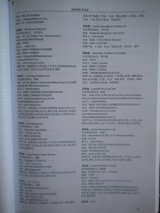 資料如何收集:在各大展會上,我們免費向到會采購商提供他們需要的最新產(chǎn)品雜志和光盤,我們也同時向他們派發(fā)帶有我們網(wǎng)站LOGO的精美禮品,這些最新的中國供應(yīng)商的信息,對他們很有幫助,采購商會留下他們的名片,填寫詳細的產(chǎn)品求購信息,以期望得到更多的供應(yīng)商的信息。收集到這些第一手的原始外商資料后,我們客戶服務(wù)中心立刻將名片掃描作成圖片,將產(chǎn)品采購信息做成數(shù)據(jù)庫,將采購商資料按行業(yè)不同,匯編成冊,出版發(fā)行《全球采購商黃頁》系列。