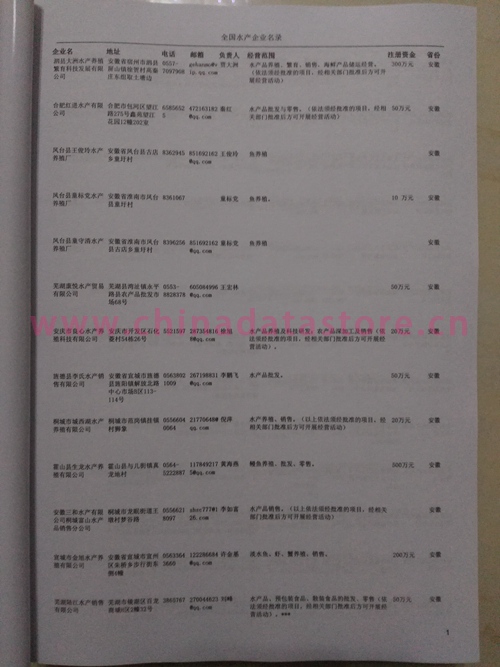 | 全國水產企業黃頁 | 全國所有水產企業黃頁 | 80% - 90% | 3000元 | 附贈上下兩冊水產紙質印刷品 |