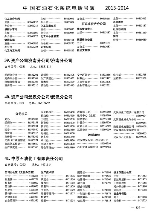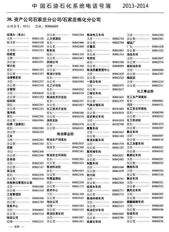 中國石油石化系統(tǒng)電話號薄