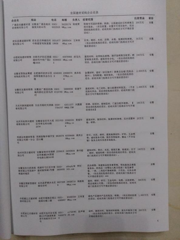 2024年新版中國建材采購企業黃頁,收錄了全國各地經營范圍涉及建材產品的貿易企業,這些都是頗具實力的建材產品的中國采購商。黃頁內容包含:企業名稱、地址、電話、傳真、郵箱、經營范圍、省份、注冊資金等信息。該套黃頁包含一個黃頁光碟加一冊紙質書刊,全國價格:1500元,省/直轄市價格:400元,城市價格:200元,共收錄了全國各地大概111371(統計日期:2018.1)家建材產品采購企業。黃頁光碟中是EXCEL格式,信息可任意修改、復制、打印、導出及導入到傳真、郵件群發等軟件中,無任何限制。