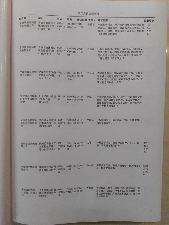 浙江貨運(yùn)公司黃頁包括:企業(yè)名稱、負(fù)責(zé)人聯(lián)系方式、企業(yè)電話、傳真、Email、經(jīng)營范圍、地址、郵編等信息。