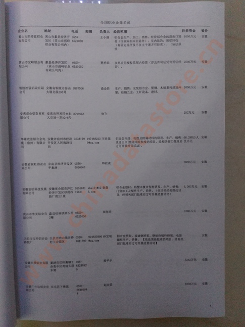| 某省或直轄市 | 如上海、浙江鋁業(yè)企業(yè)名單 | 80% - 90% | 600元 | 附贈一冊鋁業(yè)黃頁印刷品 |