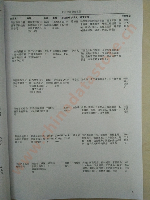2021版最新陽江企業(yè)黃頁包括《陽江制造企業(yè)黃頁》、《陽江民營企業(yè)黃頁》,現(xiàn)優(yōu)惠價:280元/冊。每冊內容包括:單位名稱、地址、郵編、電話、傳真、郵箱、經(jīng)營范圍等;陽江企業(yè)黃頁涵蓋了近幾年來最新成立的、有一定規(guī)模的企業(yè),具有非常高的營銷價值。有了這套黃頁開展業(yè)務也有了針對性,也省去了盲目去尋找客戶名單而浪費的時間了,工作效率也會有很大的提高。歡迎需要陽江企業(yè)黃頁的朋友及時聯(lián)系我們!