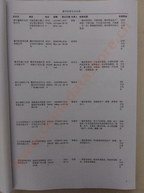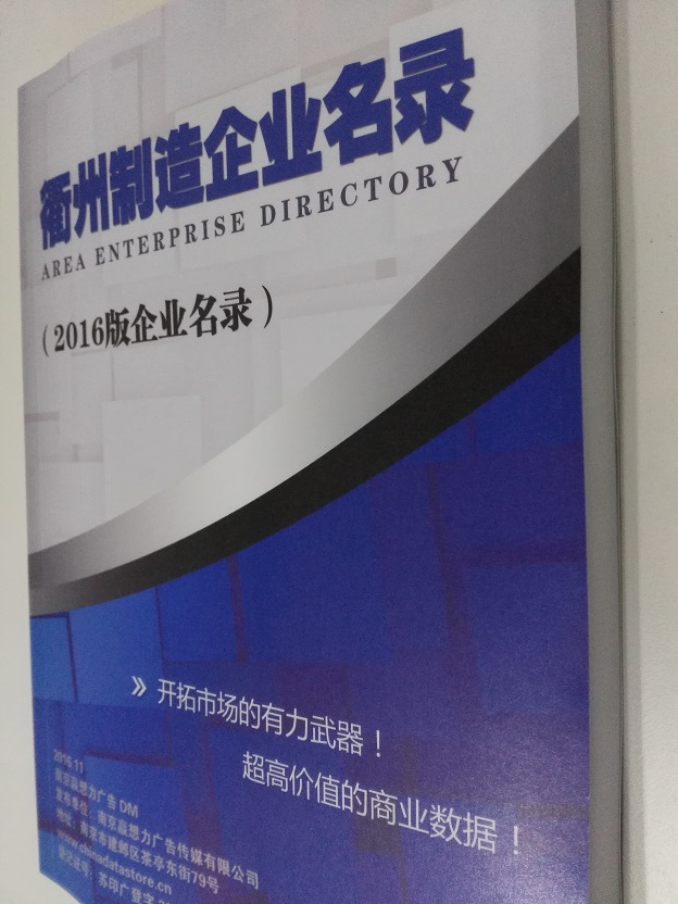 2021版最新衢州企業(yè)黃頁(yè)包括《衢州制造企業(yè)黃頁(yè)》、《衢州民營(yíng)企業(yè)黃頁(yè)》,現(xiàn)優(yōu)惠價(jià):280元/冊(cè)。每?jī)?cè)內(nèi)容包括:?jiǎn)挝幻Q(chēng)、地址、郵編、電話、傳真、郵箱、經(jīng)營(yíng)范圍等;衢州企業(yè)黃頁(yè)涵蓋了近幾年來(lái)最新成立的、有一定規(guī)模的企業(yè),具有非常高的營(yíng)銷(xiāo)價(jià)值。有了這套黃頁(yè)開(kāi)展業(yè)務(wù)也有了針對(duì)性,也省去了盲目去尋找客戶名單而浪費(fèi)的時(shí)間了,工作效率也會(huì)有很大的提高。歡迎需要衢州企業(yè)黃頁(yè)的朋友及時(shí)聯(lián)系我們!
