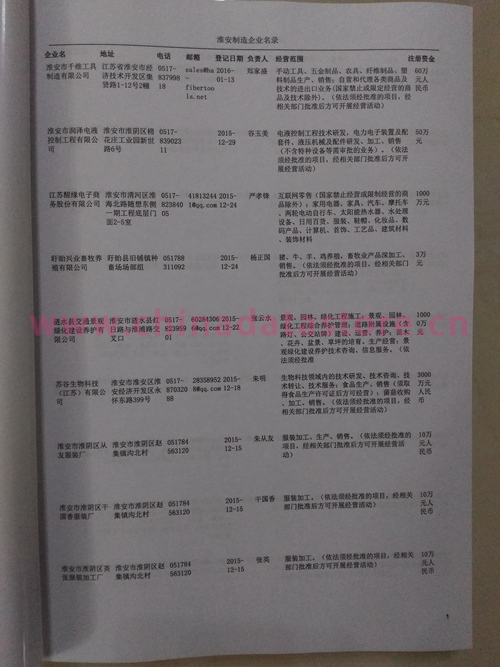 2021版最新淮安企業(yè)黃頁包括《淮安制造企業(yè)黃頁》、《淮安民營(yíng)企業(yè)黃頁》,現(xiàn)優(yōu)惠價(jià):280元/冊(cè)。每?jī)?cè)內(nèi)容包括:?jiǎn)挝幻Q、地址、郵編、電話、傳真、郵箱、經(jīng)營(yíng)范圍等;淮安企業(yè)黃頁涵蓋了近幾年來最新成立的、有一定規(guī)模的企業(yè),具有非常高的營(yíng)銷價(jià)值。有了這套黃頁開展業(yè)務(wù)也有了針對(duì)性,也省去了盲目去尋找客戶名單而浪費(fèi)的時(shí)間了,工作效率也會(huì)有很大的提高。歡迎需要淮安企業(yè)黃頁的朋友及時(shí)聯(lián)系我們!