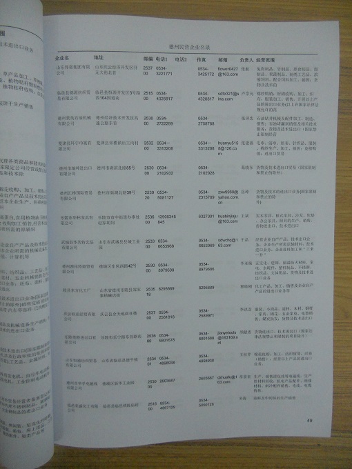 2021版最新德州企業(yè)黃頁包括《德州制造企業(yè)黃頁》、《德州民營企業(yè)黃頁》,現(xiàn)優(yōu)惠價(jià):280元/冊。每冊內(nèi)容包括:單位名稱、地址、郵編、電話、傳真、郵箱、經(jīng)營范圍等;德州企業(yè)黃頁涵蓋了近幾年來最新成立的、有一定規(guī)模的企業(yè),具有非常高的營銷價(jià)值。有了這套黃頁開展業(yè)務(wù)也有了針對性,也省去了盲目去尋找客戶名單而浪費(fèi)的時(shí)間了,工作效率也會有很大的提高。歡迎需要德州企業(yè)黃頁的朋友及時(shí)聯(lián)系我們!