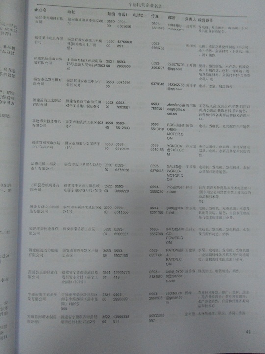 2021版最新寧德企業(yè)黃頁包括《寧德制造企業(yè)黃頁》、《寧德民營企業(yè)黃頁》,現(xiàn)優(yōu)惠價(jià):280元/冊(cè)。每冊(cè)內(nèi)容包括:單位名稱、地址、郵編、電話、傳真、郵箱、經(jīng)營范圍等;寧德企業(yè)黃頁涵蓋了近幾年來最新成立的、有一定規(guī)模的企業(yè),具有非常高的營銷價(jià)值。有了這套黃頁開展業(yè)務(wù)也有了針對(duì)性,也省去了盲目去尋找客戶名單而浪費(fèi)的時(shí)間了,工作效率也會(huì)有很大的提高。歡迎需要寧德企業(yè)黃頁的朋友及時(shí)聯(lián)系我們!
