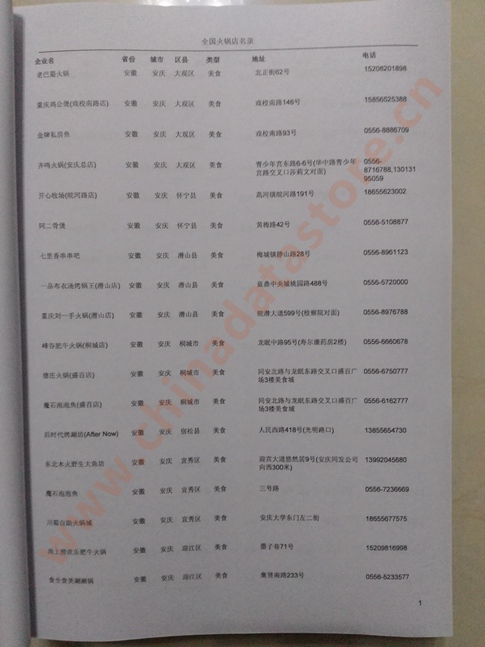 某省或直轄市 如上海、浙江火鍋店名單  80% - 90% 600元 附贈(zèng)一冊(cè)火鍋店紙質(zhì)印刷品