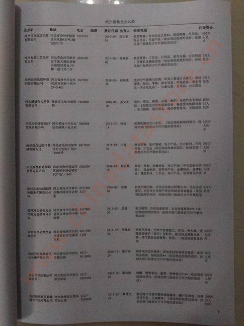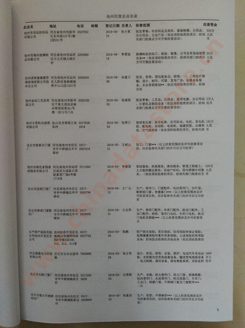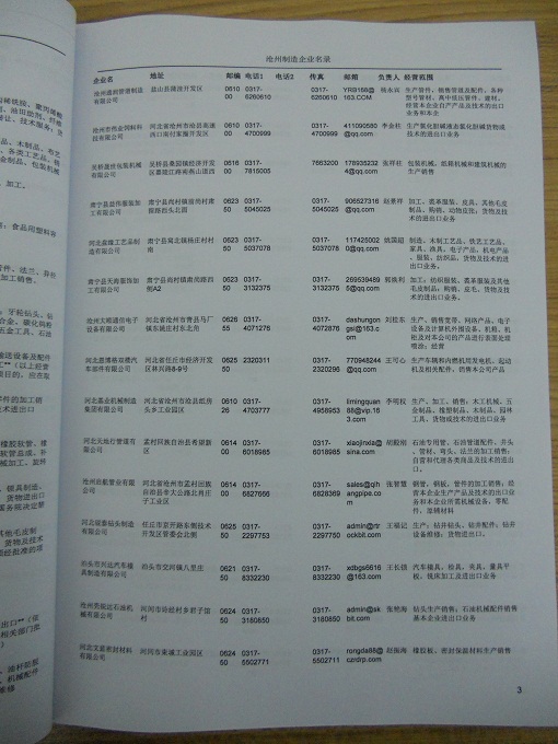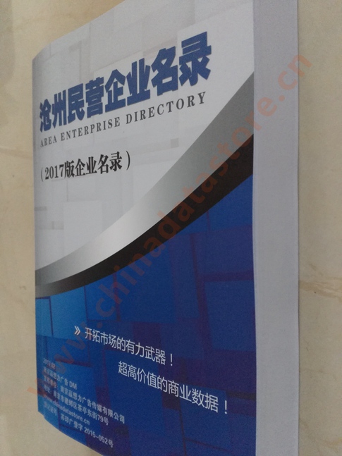 2021版最新滄州企業(yè)黃頁包括《滄州制造企業(yè)黃頁》、《滄州民營企業(yè)黃頁》,現(xiàn)優(yōu)惠價(jià):280元/冊(cè)。每冊(cè)內(nèi)容包括:單位名稱、地址、郵編、電話、傳真、郵箱、經(jīng)營范圍等;滄州企業(yè)黃頁涵蓋了近幾年來最新成立的、有一定規(guī)模的企業(yè),具有非常高的營銷價(jià)值。有了這套黃頁開展業(yè)務(wù)也有了針對(duì)性,也省去了盲目去尋找客戶名單而浪費(fèi)的時(shí)間了,工作效率也會(huì)有很大的提高。歡迎需要滄州企業(yè)黃頁的朋友及時(shí)聯(lián)系我們!