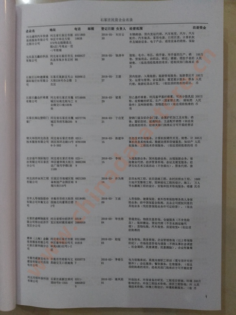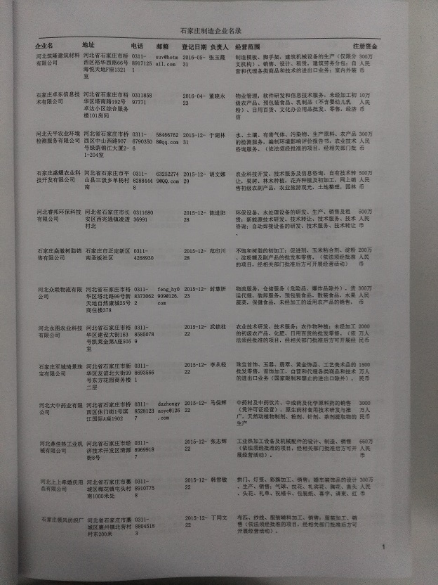 2021版最新石家莊企業(yè)黃頁包括《石家莊制造企業(yè)黃頁》、《石家莊民營企業(yè)黃頁》,現(xiàn)優(yōu)惠價(jià):280元/冊。每冊內(nèi)容包括:單位名稱、地址、郵編、電話、傳真、郵箱、經(jīng)營范圍等;石家莊企業(yè)黃頁涵蓋了近幾年來最新成立的、有一定規(guī)模的企業(yè),具有非常高的營銷價(jià)值。有了這套黃頁開展業(yè)務(wù)也有了針對性,也省去了盲目去尋找客戶名單而浪費(fèi)的時(shí)間了,工作效率也會(huì)有很大的提高。歡迎需要石家莊企業(yè)黃頁的朋友及時(shí)聯(lián)系我們!