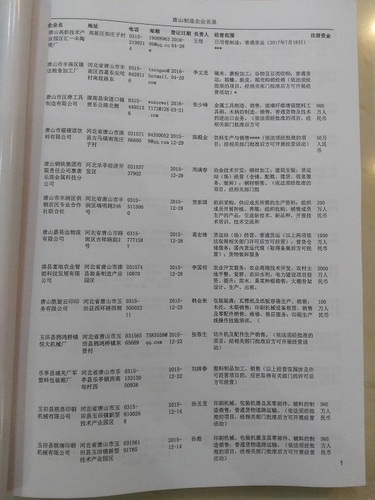 2021版最新唐山企業(yè)黃頁包括《唐山制造企業(yè)黃頁》、《唐山民營企業(yè)黃頁》,現(xiàn)優(yōu)惠價:280元/冊。每冊內(nèi)容包括:單位名稱、地址、郵編、電話、傳真、郵箱、經(jīng)營范圍等;唐山企業(yè)黃頁涵蓋了近幾年來最新成立的、有一定規(guī)模的企業(yè),具有非常高的營銷價值。有了這套黃頁開展業(yè)務(wù)也有了針對性,也省去了盲目去尋找客戶名單而浪費的時間了,工作效率也會有很大的提高。歡迎需要唐山企業(yè)黃頁的朋友及時聯(lián)系我們!