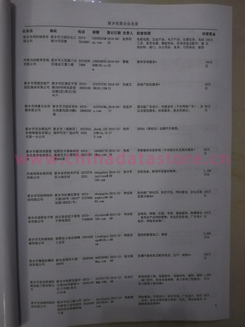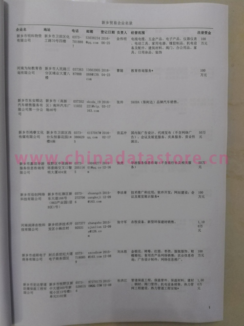 2021版最新新鄉(xiāng)企業(yè)黃頁包括《新鄉(xiāng)制造企業(yè)黃頁》、《新鄉(xiāng)民營企業(yè)黃頁》,現(xiàn)優(yōu)惠價:280元/冊。每冊內(nèi)容包括:單位名稱、地址、郵編、電話、傳真、郵箱、經(jīng)營范圍等;新鄉(xiāng)企業(yè)黃頁涵蓋了近幾年來最新成立的、有一定規(guī)模的企業(yè),具有非常高的營銷價值。有了這套黃頁開展業(yè)務(wù)也有了針對性,也省去了盲目去尋找客戶名單而浪費(fèi)的時間了,工作效率也會有很大的提高。歡迎需要新鄉(xiāng)企業(yè)黃頁的朋友及時聯(lián)系我們!