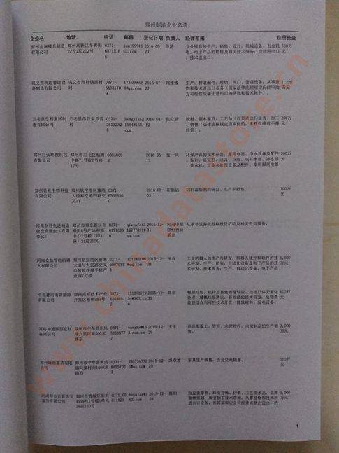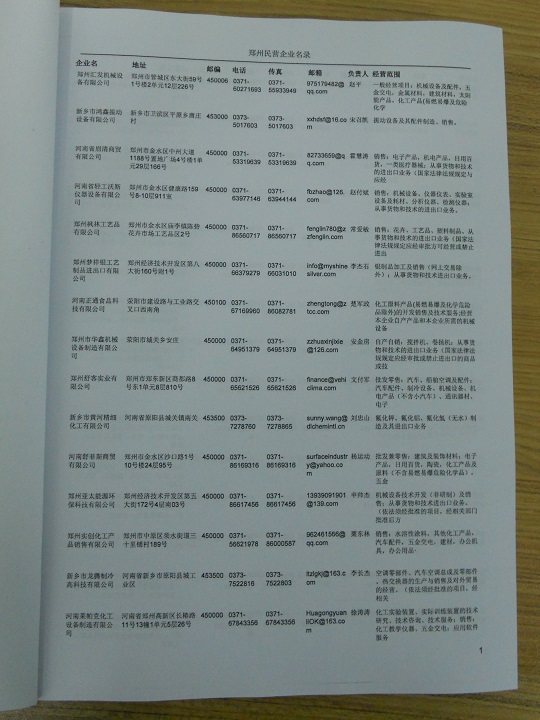 2021版最新鄭州企業(yè)黃頁包括《鄭州制造企業(yè)黃頁》、《鄭州民營企業(yè)黃頁》,現(xiàn)優(yōu)惠價:280元/冊。每冊內(nèi)容包括:單位名稱、地址、郵編、電話、傳真、郵箱、經(jīng)營范圍等;鄭州企業(yè)黃頁涵蓋了近幾年來最新成立的、有一定規(guī)模的企業(yè),具有非常高的營銷價值。有了這套黃頁開展業(yè)務(wù)也有了針對性,也省去了盲目去尋找客戶名單而浪費的時間了,工作效率也會有很大的提高。歡迎需要鄭州企業(yè)黃頁的朋友及時聯(lián)系我們!
