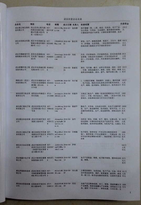 2021版最新武漢企業(yè)黃頁(yè)包括《武漢制造企業(yè)黃頁(yè)》、《武漢民營(yíng)企業(yè)黃頁(yè)》,現(xiàn)優(yōu)惠價(jià):280元/冊(cè)。每?jī)?cè)內(nèi)容包括:?jiǎn)挝幻Q、地址、郵編、電話、傳真、郵箱、經(jīng)營(yíng)范圍等;武漢企業(yè)黃頁(yè)涵蓋了近幾年來(lái)最新成立的、有一定規(guī)模的企業(yè),具有非常高的營(yíng)銷價(jià)值。有了這套黃頁(yè)開展業(yè)務(wù)也有了針對(duì)性,也省去了盲目去尋找客戶名單而浪費(fèi)的時(shí)間了,工作效率也會(huì)有很大的提高。歡迎需要武漢企業(yè)黃頁(yè)的朋友及時(shí)聯(lián)系我們!