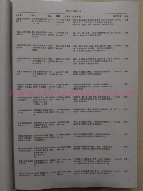 某省或直轄市 如上海、浙江酒水經(jīng)銷企業(yè)名單  80% - 90% 600元 附贈(zèng)一冊(cè)酒水經(jīng)銷紙質(zhì)印刷品