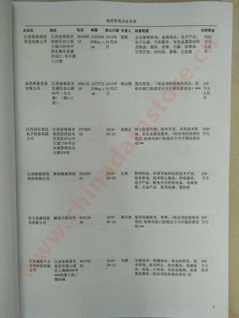 2021版最新南昌企業(yè)黃頁包括《南昌制造企業(yè)黃頁》、《南昌民營企業(yè)黃頁》,現(xiàn)優(yōu)惠價(jià):280元/冊。每冊內(nèi)容包括:單位名稱、地址、郵編、電話、傳真、郵箱、經(jīng)營范圍等;南昌企業(yè)黃頁涵蓋了近幾年來最新成立的、有一定規(guī)模的企業(yè),具有非常高的營銷價(jià)值。有了這套黃頁開展業(yè)務(wù)也有了針對性,也省去了盲目去尋找客戶名單而浪費(fèi)的時(shí)間了,工作效率也會有很大的提高。歡迎需要南昌企業(yè)黃頁的朋友及時(shí)聯(lián)系我們!