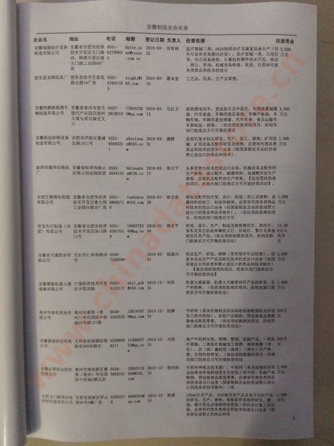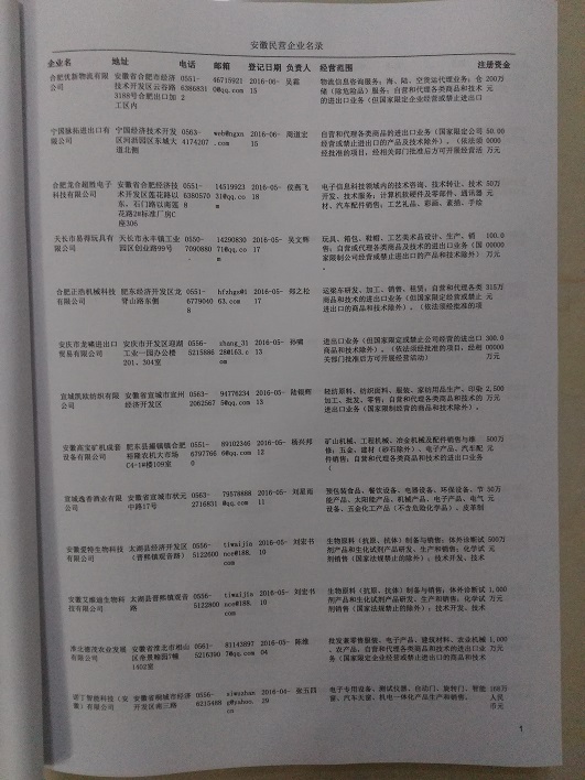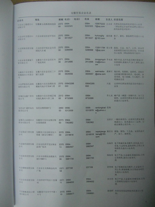 2021版最新安徽企業(yè)黃頁包括《安徽制造企業(yè)黃頁》、《安徽貿(mào)易企業(yè)黃頁》、《安徽民營企業(yè)黃頁》共三冊,優(yōu)惠價:280元/冊。每冊內(nèi)容包括:單位名稱、地址、郵編、電話、傳真、郵箱、經(jīng)營范圍等;安徽企業(yè)黃頁涵蓋了近幾年來最新成立的、有一定規(guī)模的企業(yè),具有非常高的營銷價值。有了這套黃頁開展業(yè)務(wù)也有了針對性,也省去了盲目去尋找客戶名單而浪費(fèi)的時間了,工作效率也會有很大的提高。歡迎需要安徽企業(yè)黃頁的朋友及時聯(lián)系我們!