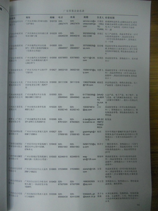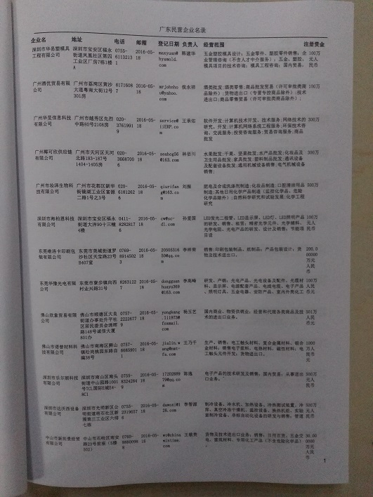 2021版最新廣東企業(yè)黃頁包括《廣東制造企業(yè)黃頁》、《廣東貿(mào)易企業(yè)黃頁》、《廣東民營企業(yè)黃頁》共三冊(cè),優(yōu)惠價(jià):280元/冊(cè)。每冊(cè)內(nèi)容包括:單位名稱、地址、郵編、電話、傳真、郵箱、經(jīng)營范圍等;廣東企業(yè)黃頁涵蓋了近幾年來最新成立的、有一定規(guī)模的企業(yè),具有非常高的營銷價(jià)值。有了這套黃頁開展業(yè)務(wù)也有了針對(duì)性,也省去了盲目去尋找客戶名單而浪費(fèi)的時(shí)間了,工作效率也會(huì)有很大的提高。歡迎需要廣東企業(yè)黃頁的朋友及時(shí)聯(lián)系我們!