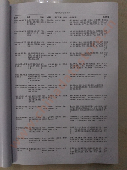 2021版最新湖南企業(yè)黃頁包括《湖南制造企業(yè)黃頁》、《湖南貿(mào)易企業(yè)黃頁》、《湖南民營企業(yè)黃頁》共三冊,優(yōu)惠價:280元/冊。每冊內(nèi)容包括:單位名稱、地址、郵編、電話、傳真、郵箱、經(jīng)營范圍等;湖南企業(yè)黃頁涵蓋了近幾年來最新成立的、有一定規(guī)模的企業(yè),具有非常高的營銷價值。有了這套黃頁開展業(yè)務(wù)也有了針對性,也省去了盲目去尋找客戶名單而浪費(fèi)的時間了,工作效率也會有很大的提高。歡迎需要湖南企業(yè)黃頁的朋友及時聯(lián)系我們!
