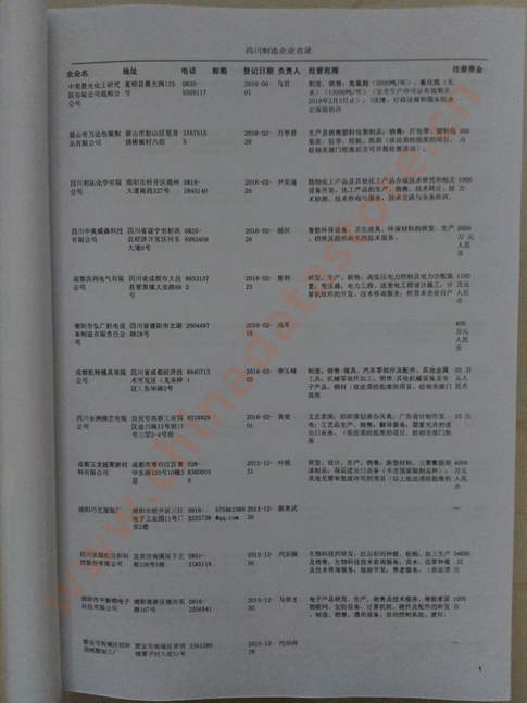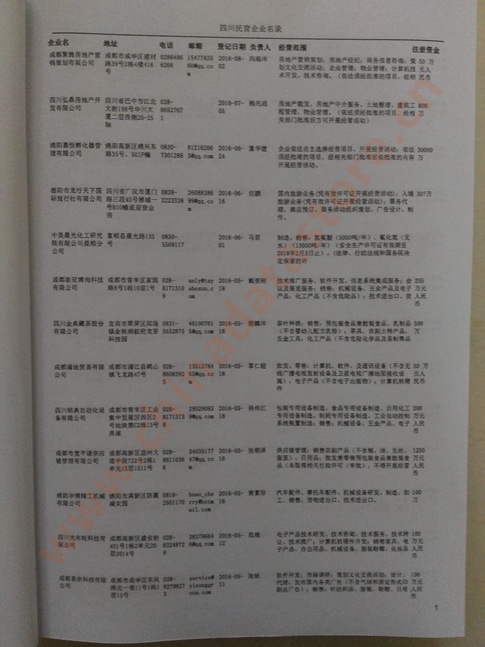 2021版最新四川企業(yè)黃頁包括《四川制造企業(yè)黃頁》、《四川貿(mào)易企業(yè)黃頁》、《四川民營企業(yè)黃頁》共三冊,優(yōu)惠價(jià):280元/冊。每冊內(nèi)容包括:單位名稱、地址、郵編、電話、傳真、郵箱、經(jīng)營范圍等;四川企業(yè)黃頁涵蓋了近幾年來最新成立的、有一定規(guī)模的企業(yè),具有非常高的營銷價(jià)值。有了這套黃頁開展業(yè)務(wù)也有了針對性,也省去了盲目去尋找客戶名單而浪費(fèi)的時間了,工作效率也會有很大的提高。歡迎需要四川企業(yè)黃頁的朋友及時聯(lián)系我們!