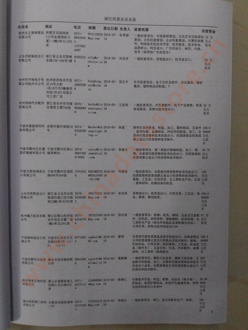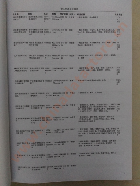 2021版最新浙江企業(yè)黃頁(yè)包括《浙江制造企業(yè)黃頁(yè)》、《浙江貿(mào)易企業(yè)黃頁(yè)》、《浙江民營(yíng)企業(yè)黃頁(yè)》共三冊(cè),優(yōu)惠價(jià):280元/冊(cè)。每?jī)?cè)內(nèi)容包括:?jiǎn)挝幻Q、地址、郵編、電話、傳真、郵箱、經(jīng)營(yíng)范圍等;浙江企業(yè)黃頁(yè)涵蓋了近幾年來(lái)最新成立的、有一定規(guī)模的企業(yè),具有非常高的營(yíng)銷價(jià)值。有了這套黃頁(yè)開(kāi)展業(yè)務(wù)也有了針對(duì)性,也省去了盲目去尋找客戶名單而浪費(fèi)的時(shí)間了,工作效率也會(huì)有很大的提高。歡迎需要浙江企業(yè)黃頁(yè)的朋友及時(shí)聯(lián)系我們!