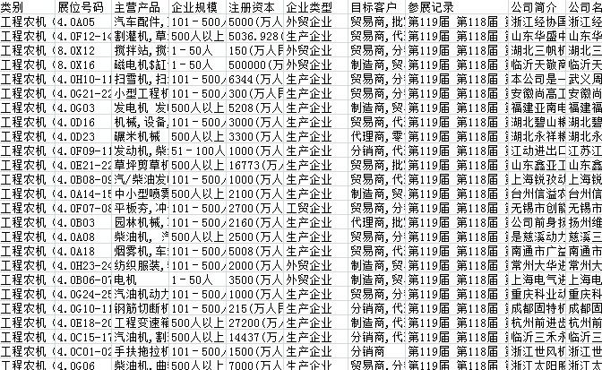 119屆廣交會(huì)參展商黃頁數(shù)據(jù)為Excel格式,信息可任意修改、復(fù)制、打印、導(dǎo)出及導(dǎo)入到傳真、郵件群發(fā)等軟件中,無任何限制。