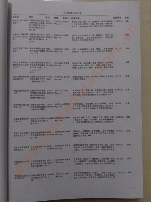 | 某省或直轄市 | 如上海、浙江幕墻企業(yè)名單 | 80% - 90% | 600元 | 附贈(zèng)一冊(cè) 幕墻企業(yè)紙質(zhì)印刷品 |