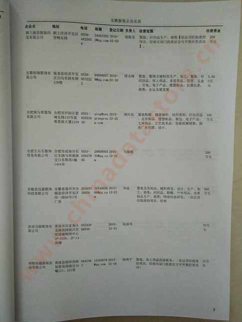 安徽服裝企業(yè)名單助您立刻獲得大量潛在客戶(hù)信息,大大減少銷(xiāo)售成本,是您的事業(yè)事半功倍