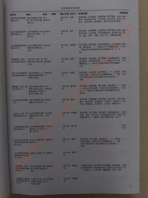 北京投資企業精準名錄