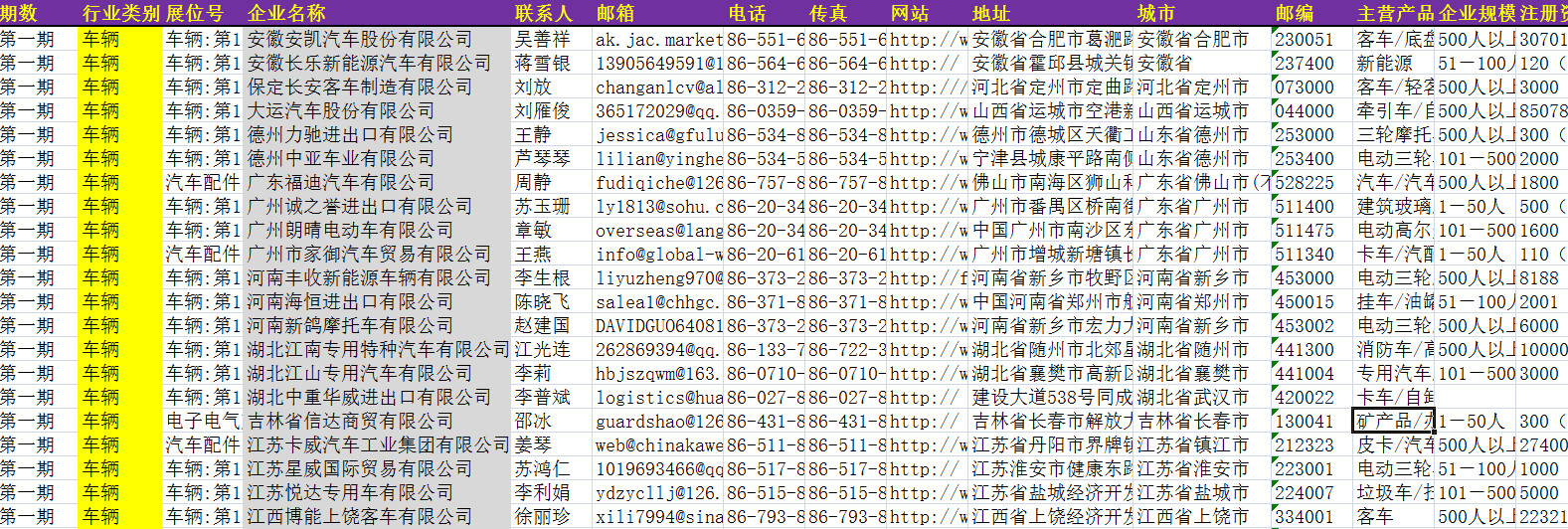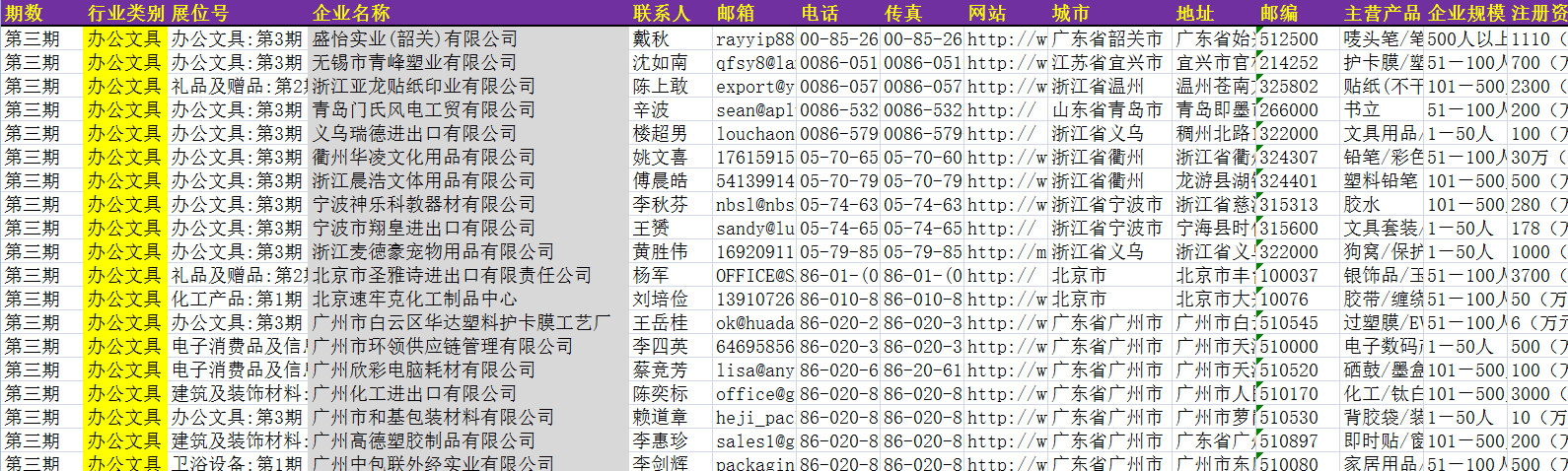 121屆廣交會(huì)參展商黃頁數(shù)據(jù)為Excel格式,信息可任意修改、復(fù)制、打印、導(dǎo)出及導(dǎo)入到傳真、郵件群發(fā)等軟件中,無任何限制。